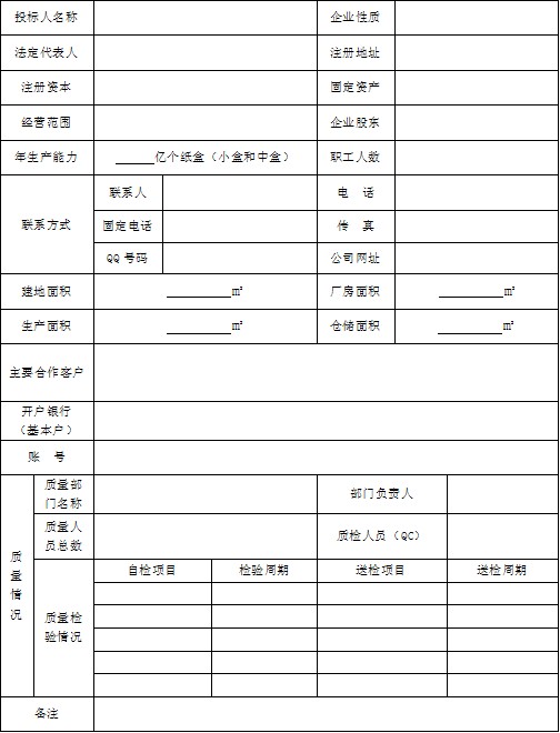 2、资质要求:企业法人营业执照(副本)、组织机构代码证、税务登记证(国税、地税)印刷经营许可证、商品条码印刷资格证书、全国工业产品生产许可证;