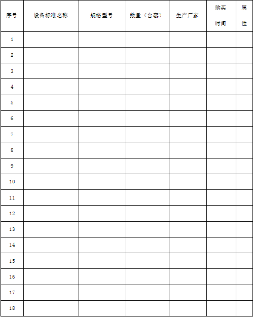 注:属性是指生产型设备、检验型设备及其他相关设备,按先生产后检验规则填报,如果行数不够可自行添加。