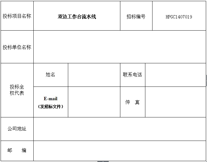 其他要求:报名需将报名表传真至哈药集团招标采购部并电话确认。