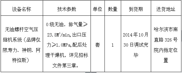 一、采购名称:哈药六厂螺杆式无油空压机组采购采购招标