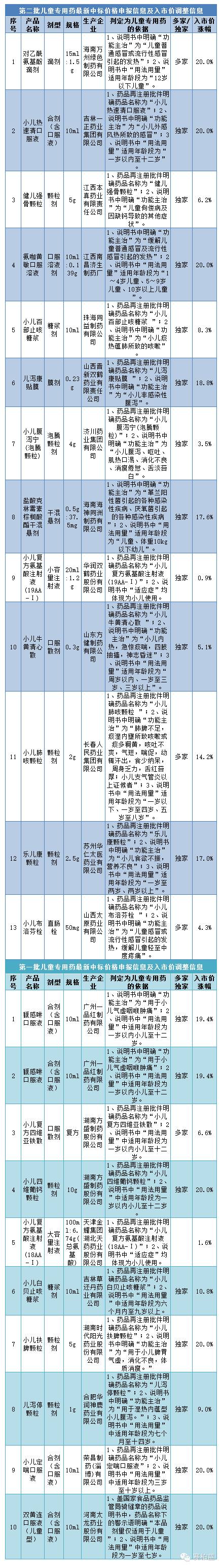 这些儿童专用药中,入市价增幅最高达20%,平均增幅也达到了13.2%。这是由于规定调整后的入市价高于调整前的120%,取调整前原入市价的120%作为入市价。也就是说,如果没有此规则,其入市价上涨将可能会更加明显!