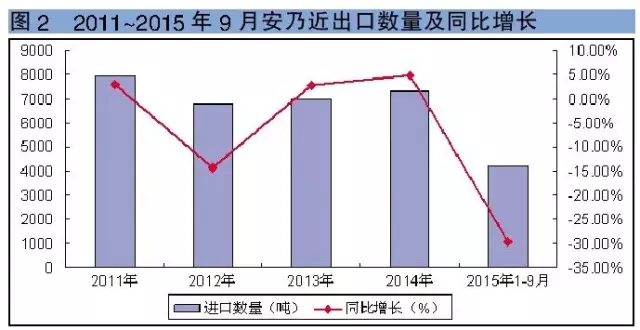 但进入21世纪第2个十年后,国际市场上双氯芬酸开始重新趋热,估计目前全球双氯芬酸年销量已突破1万吨,我国2015年实际出口双氯芬酸原料药为3000多吨,与90年代国际市场销售总量接近。