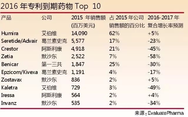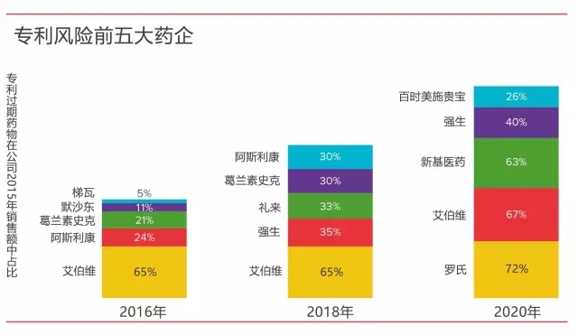 不只是支付部门有让药品价格下降的动力,仿制药市场竞争也能催生价格的不断下降。虽然在2016年各大药企都面临重磅药物专利到期,但真正的影响还要多年以后才能显现出来。