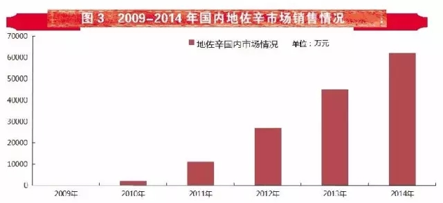 据国内22个城市样本医院数据,2014年,样本医院地佐辛注射液用药金额达6.2亿元,比上一年增长37.8%。从2009-2014年销售趋势来看,国内地佐辛连续六年保持高速增长,销售势头强劲。