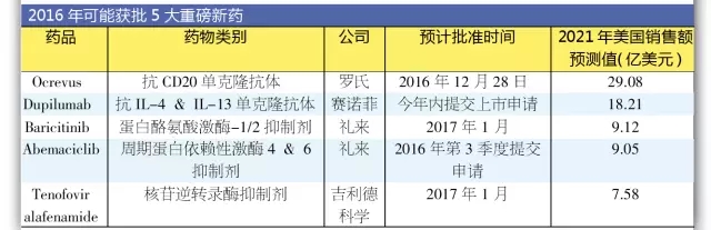 事实上,还有几个目前尚在审批进程中的重要药物可能会在2017年上市,这影响了今年上市的新药总量。